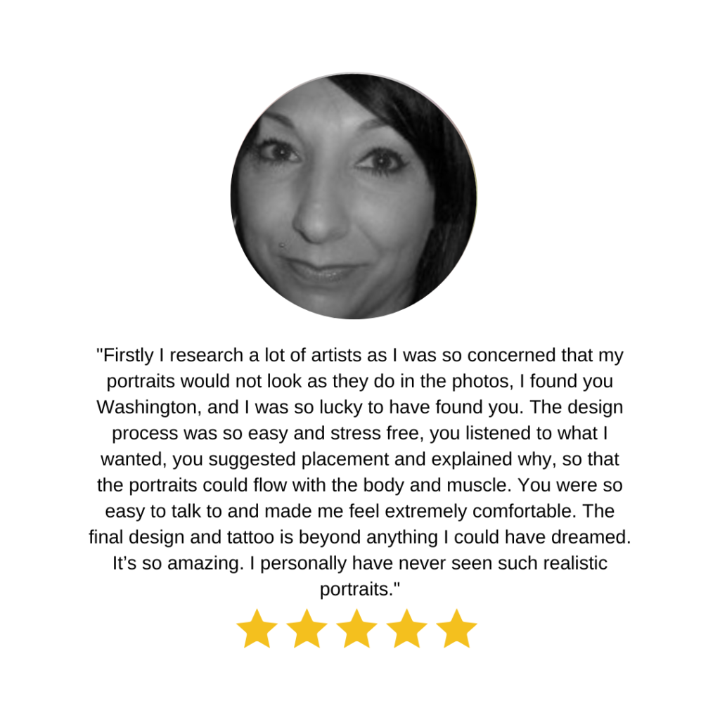 Absolutely! You can explore our portfolio on Instagram @washington_tattoo or visit our Facebook page ‘Washington Tattoo.’ Don’t forget to give us a like and share with your friends. We can’t wait to connect with you!